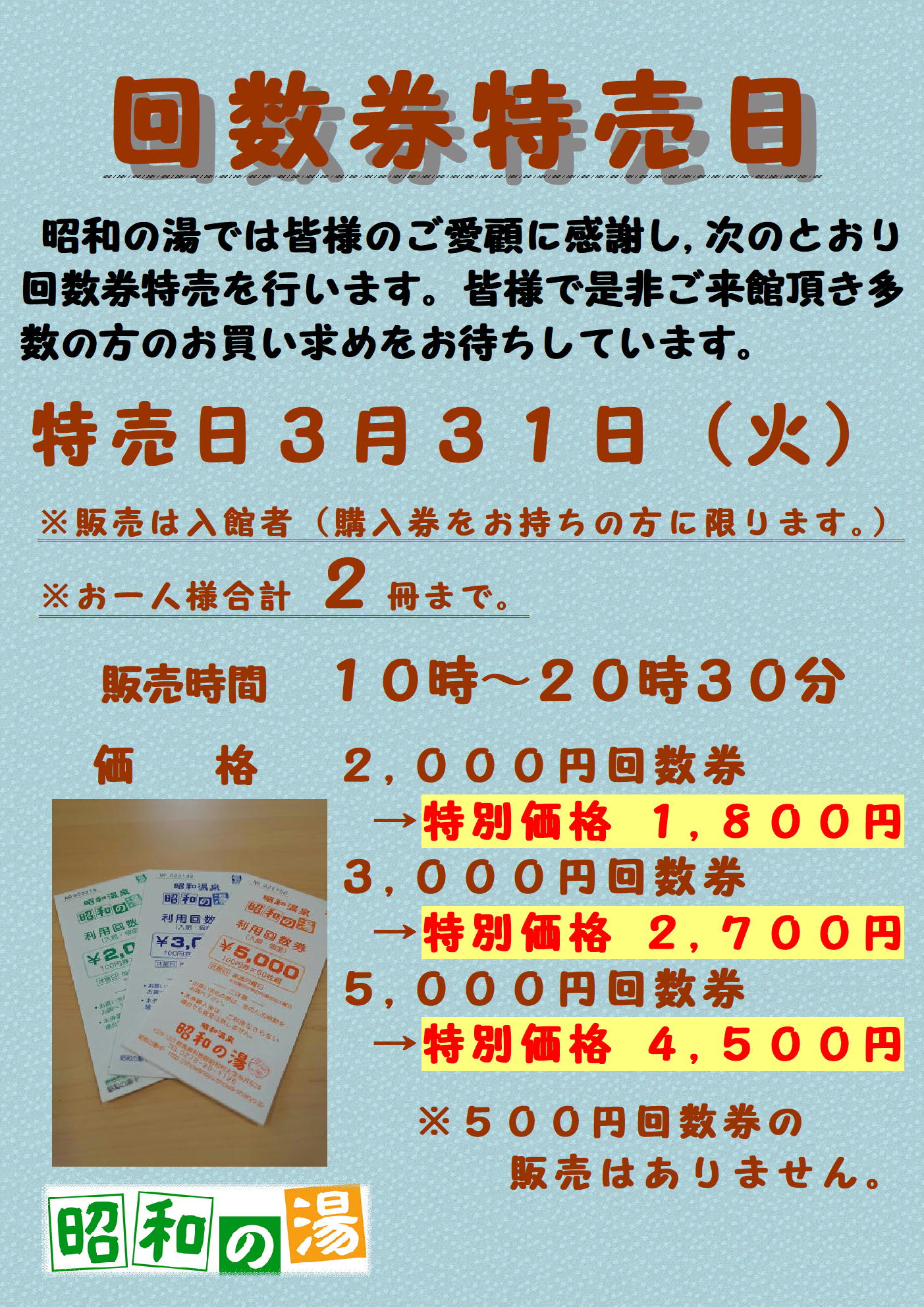 今年度も恒例となりました「利用回数券特売」を開催します。